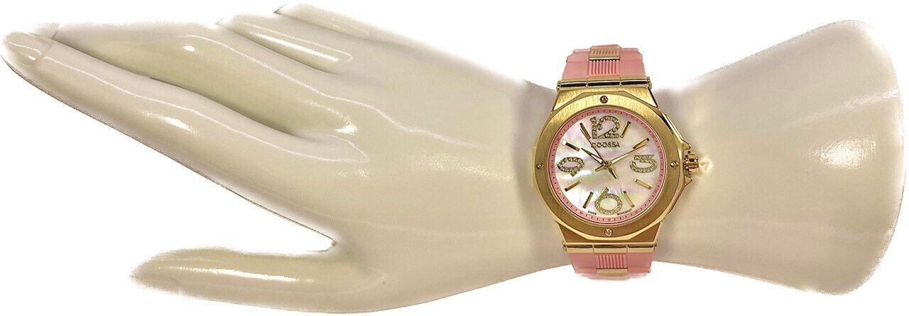 COOSSA ORIGINAL First Edition 20250 Women's Watch Swiss Ronda Movement Mother of Pearl Dial 36.5MM Stainless Steel Case 100M Water Resistant Pink/Gold Tone