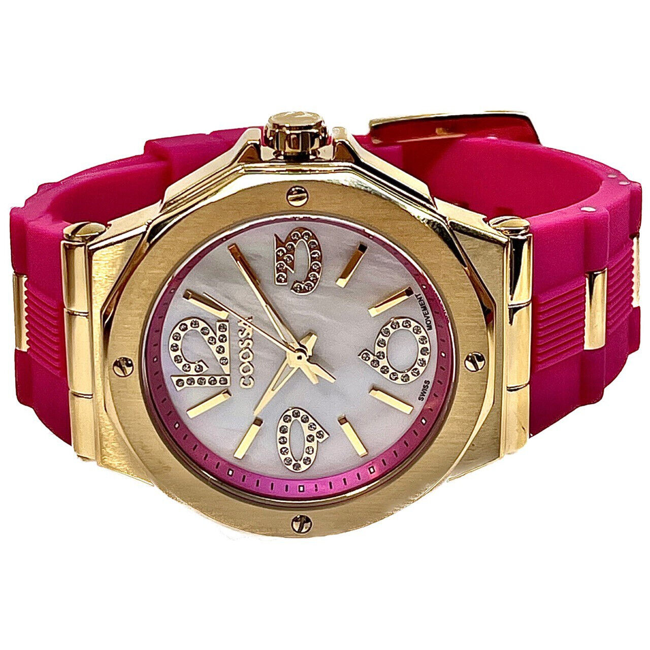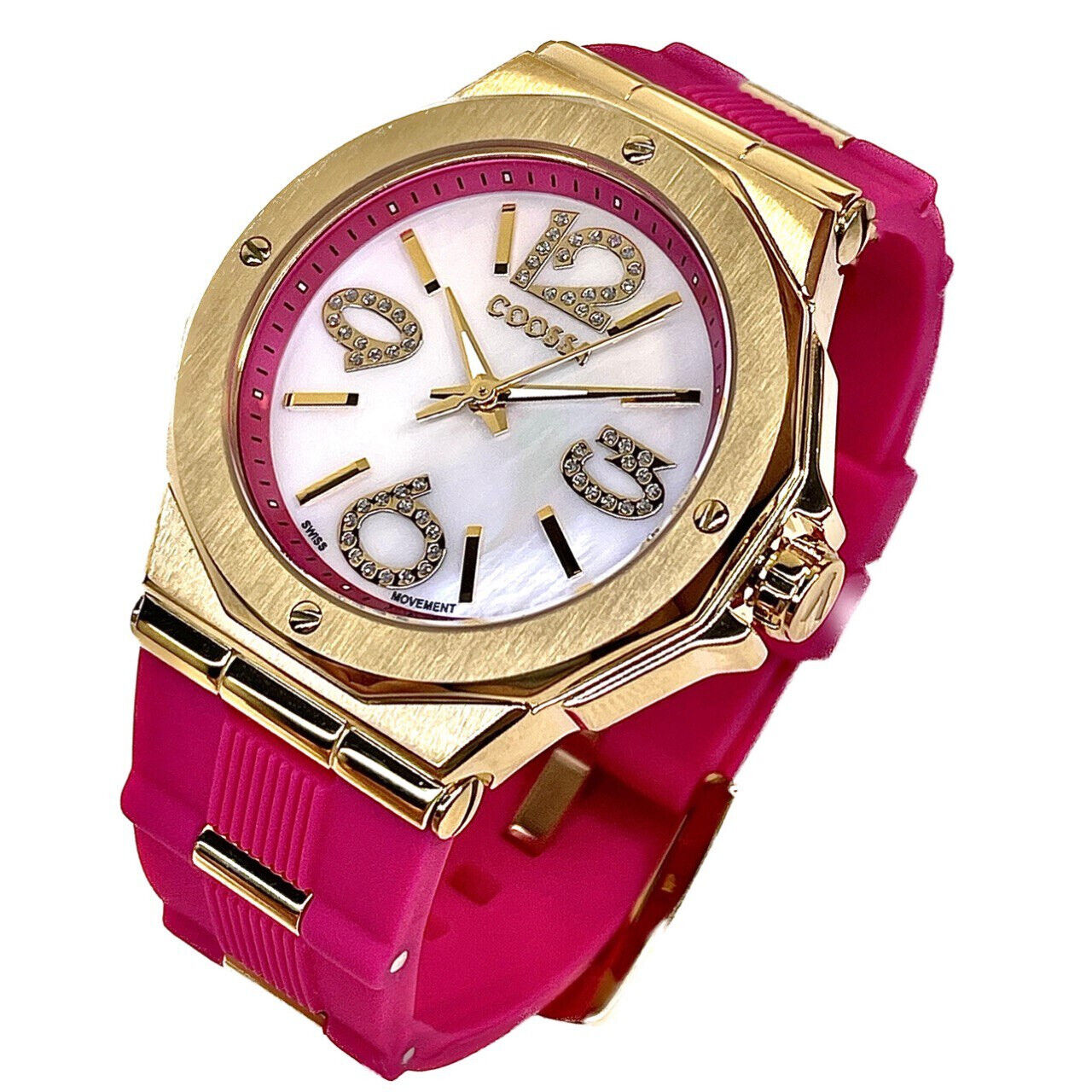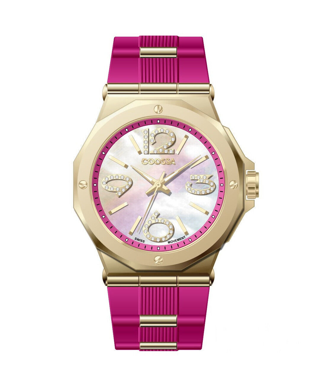 COOSSA ORIGINAL First Edition 20251 Women's Watch Swiss Ronda Movement Mother of Pearl Dial 36.5MM Stainless Steel Case 100M Water Resistant Magenta/Gold Tone