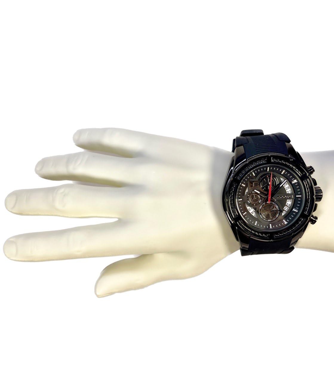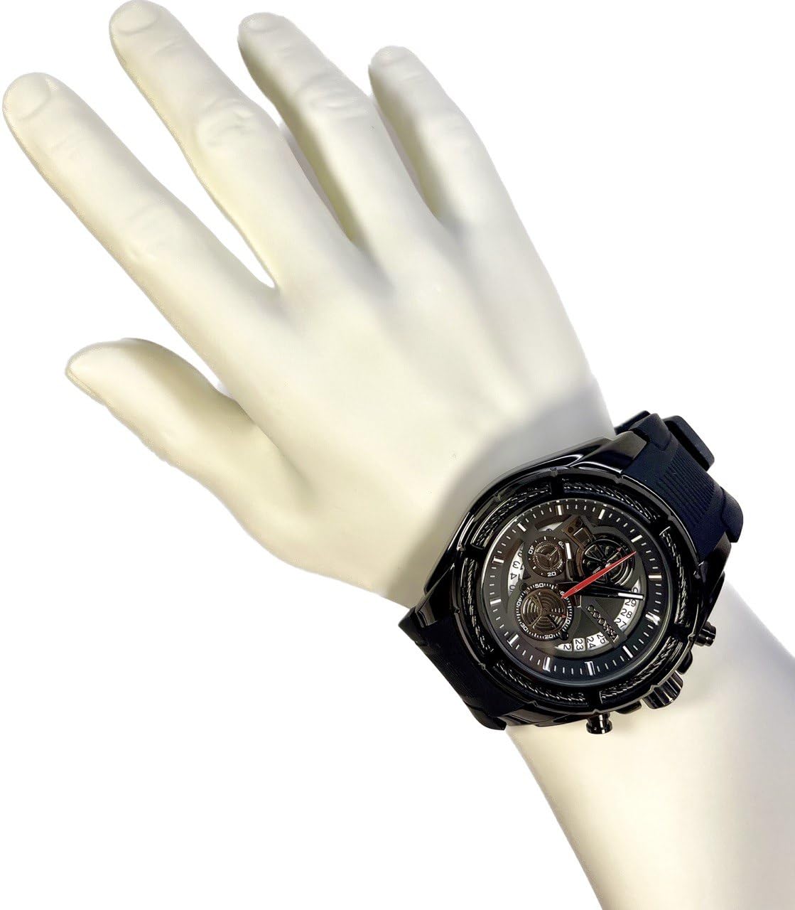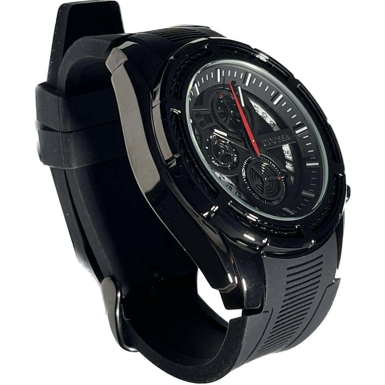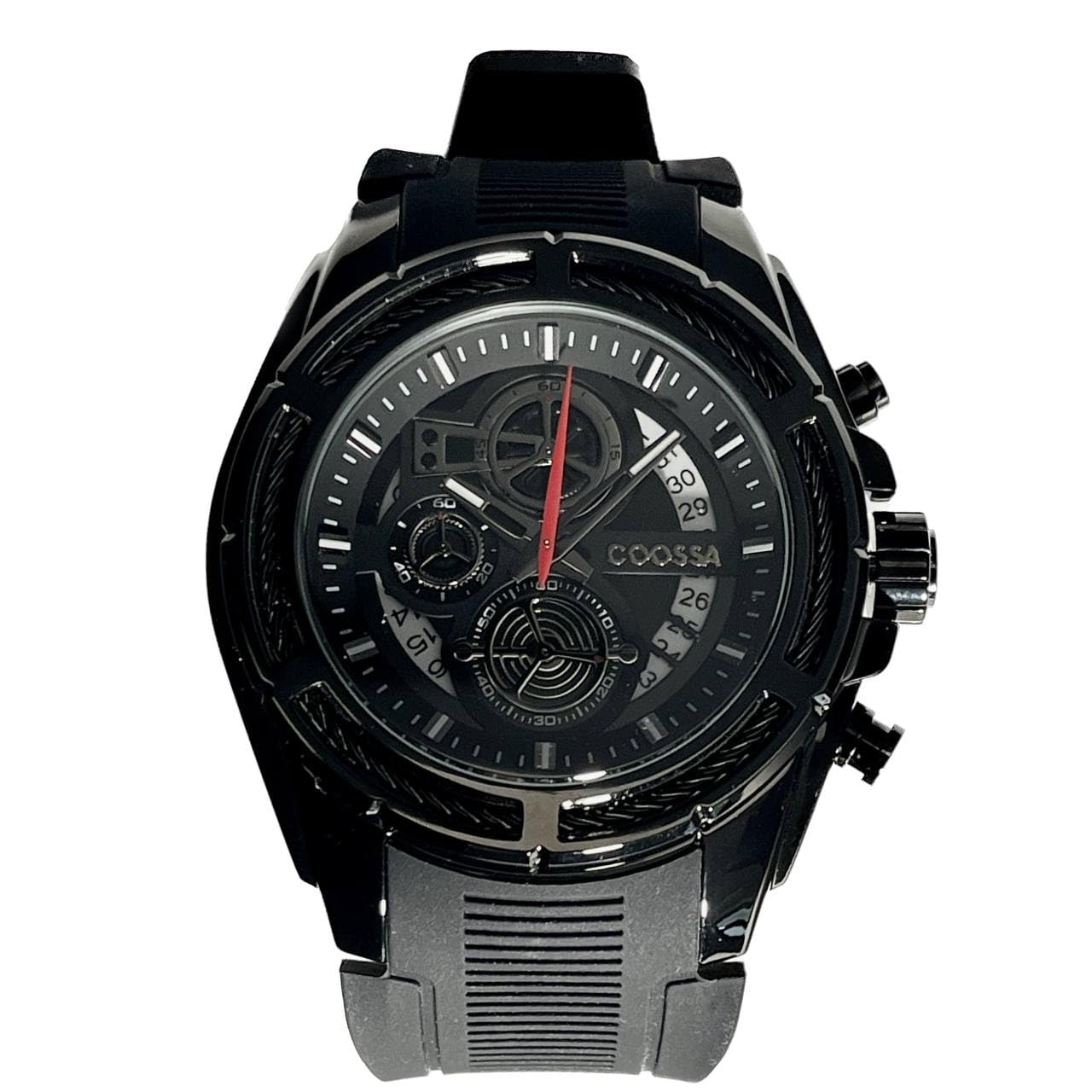 COOSSA ORIGINAL Men's Watch Chronograph 20232 48MM Polished Black Tone Case Black Silicone Band 30M Water Resistant Cable Bezel
