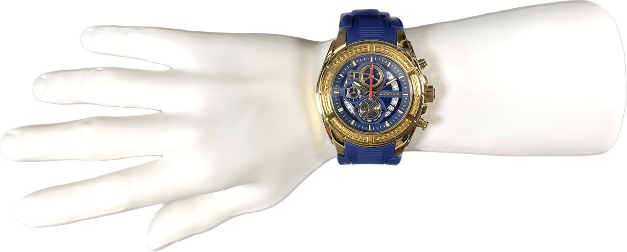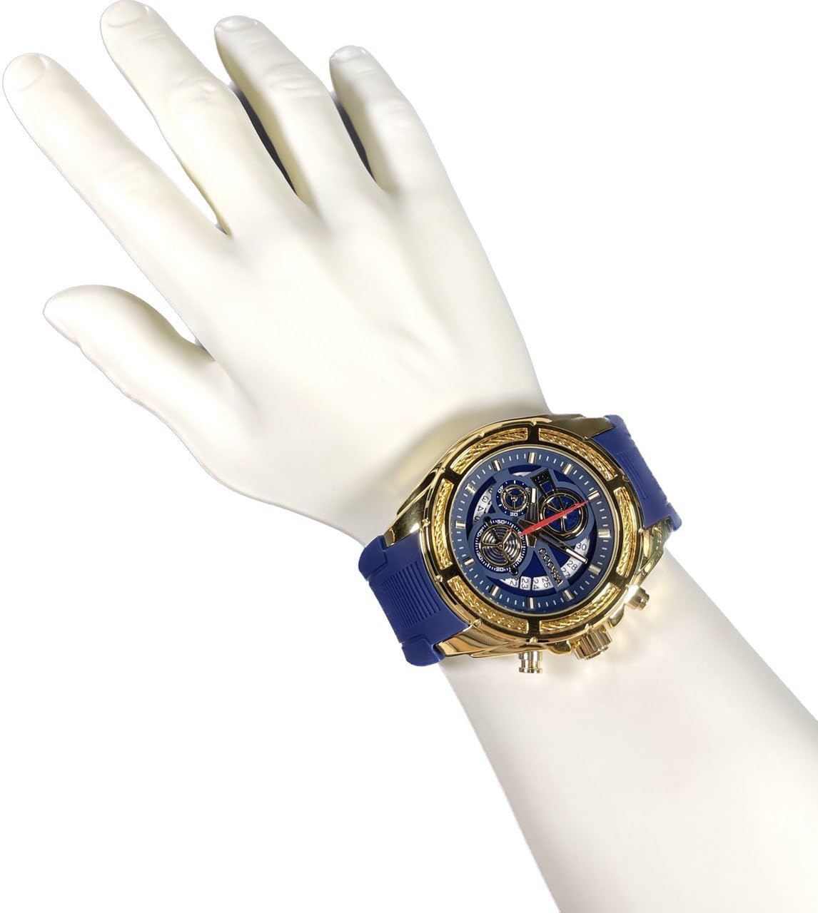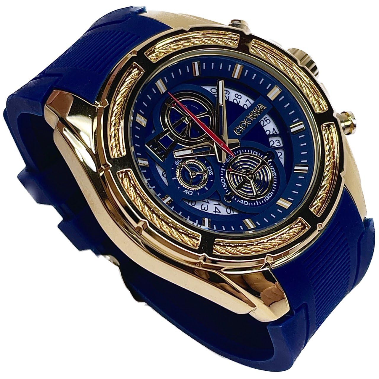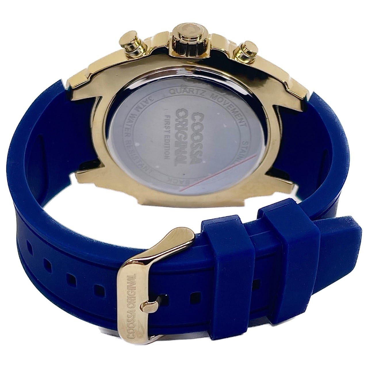 COOSSA ORIGINAL Men's Watch Chronograph 20234 48MM Gold Tone Case Blue Silicone Band 30M Water Resistant Cable Bezel