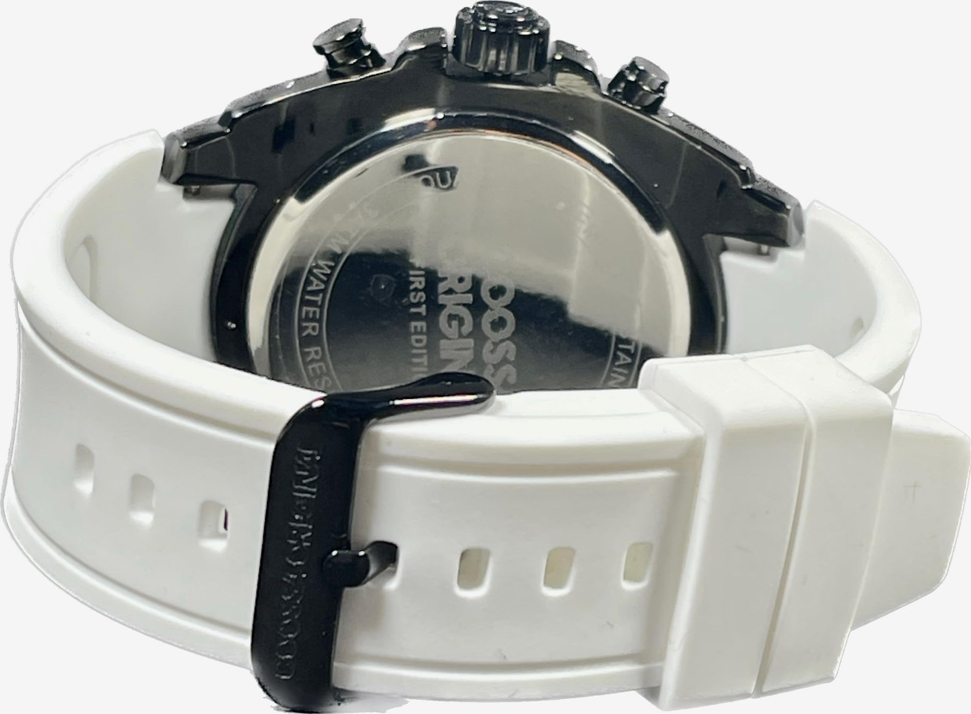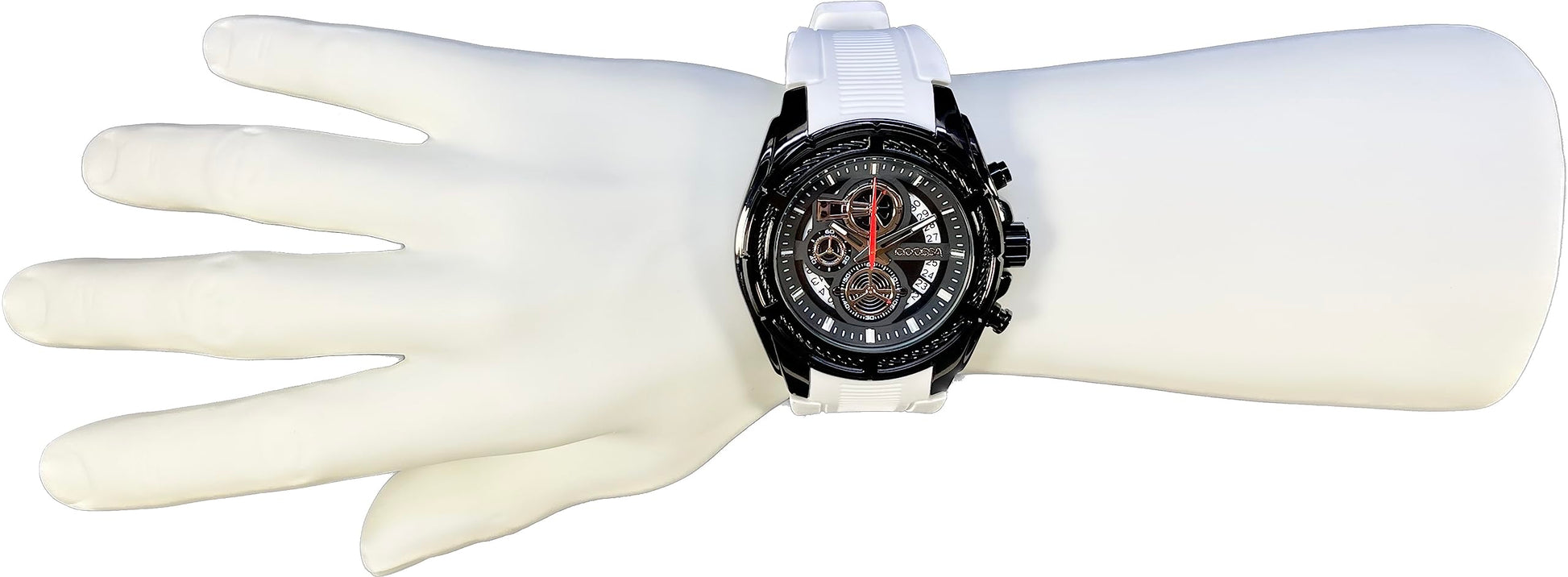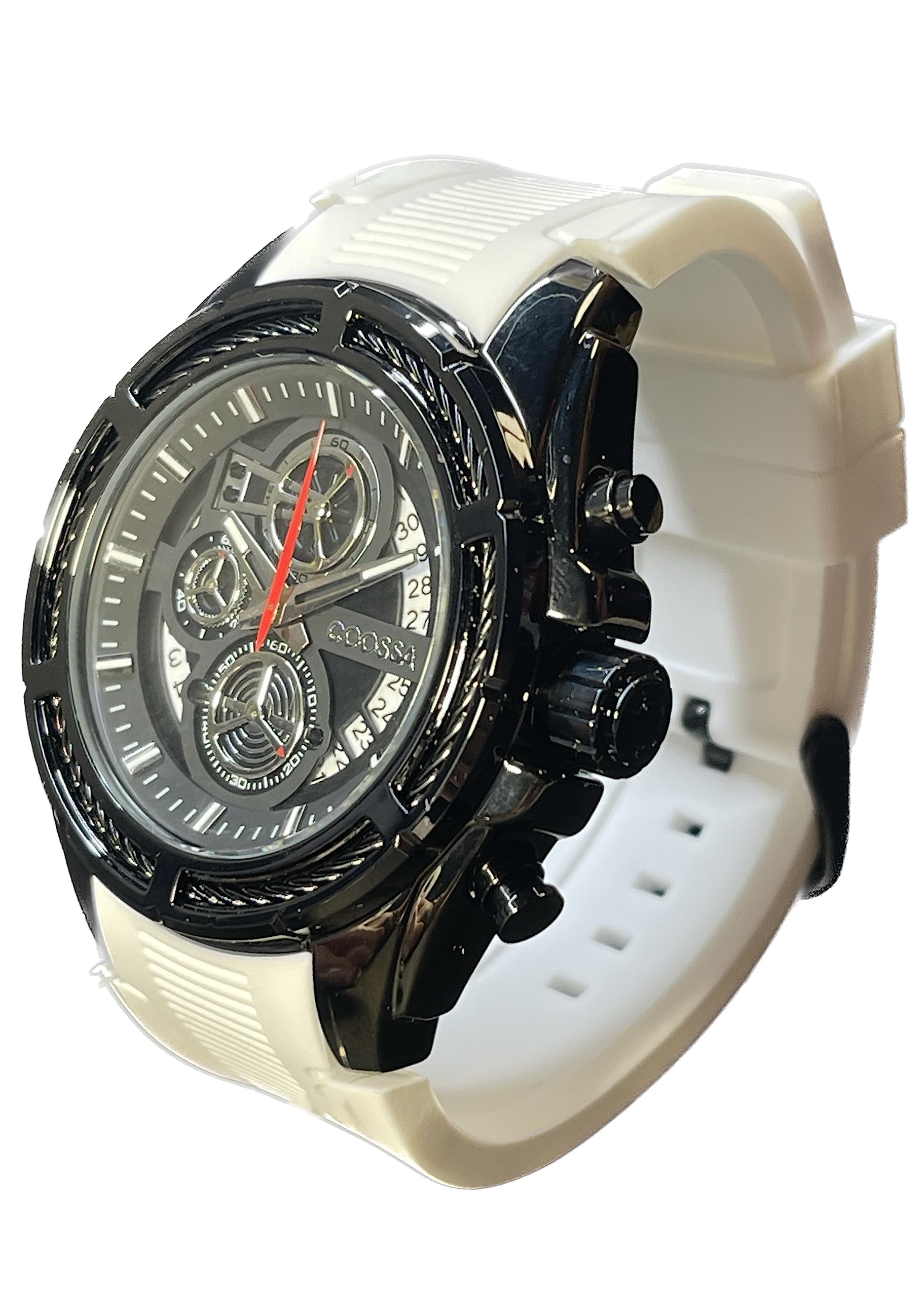 COOSSA ORIGINAL Men's Watch Chronograph 20242 48MM Black Tone Case White Silicone Band 30M Water Resistant Cable Bezel