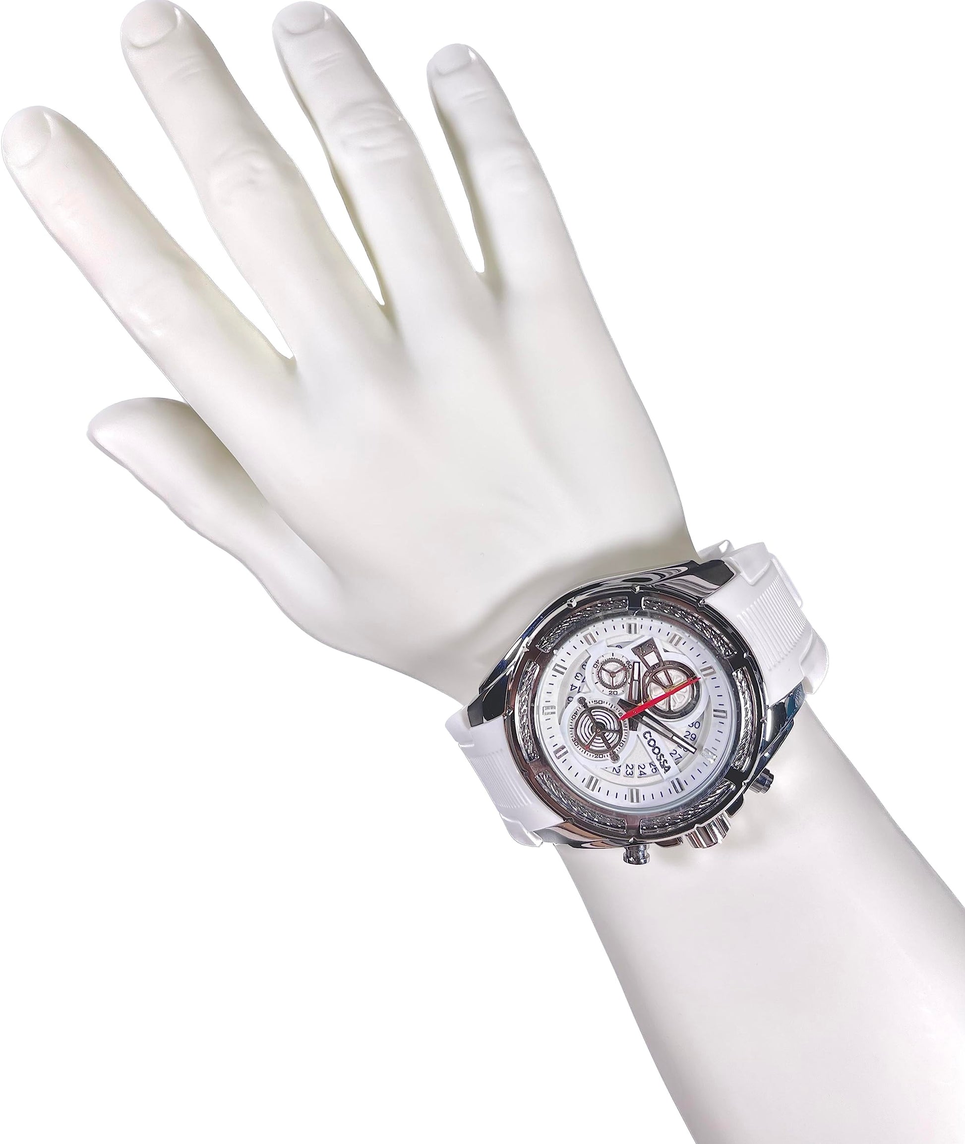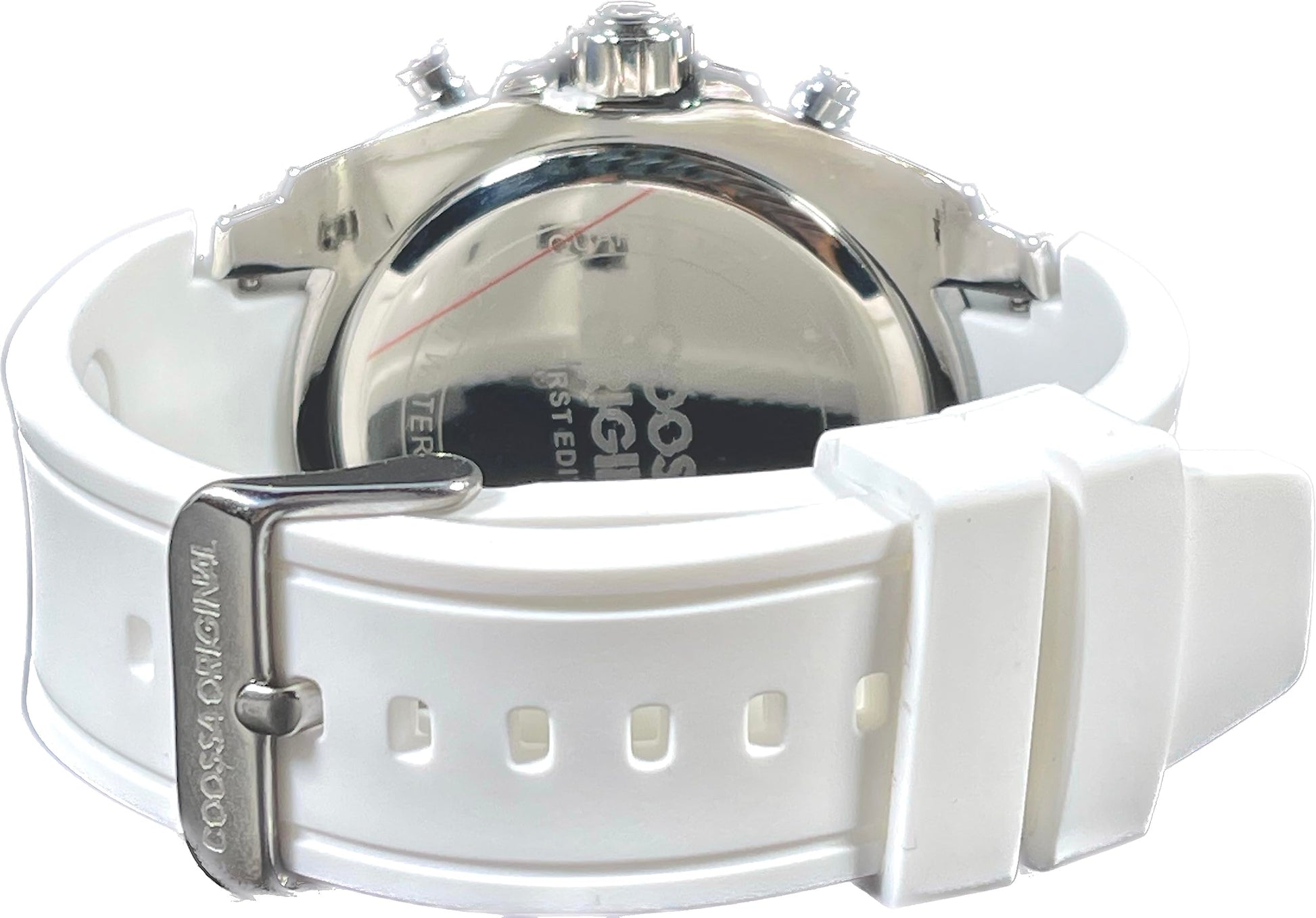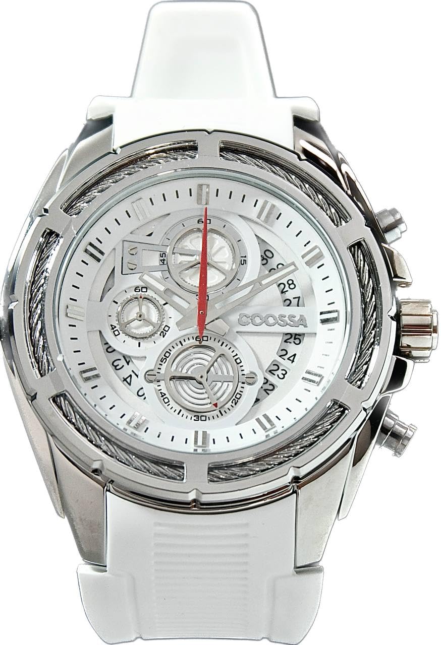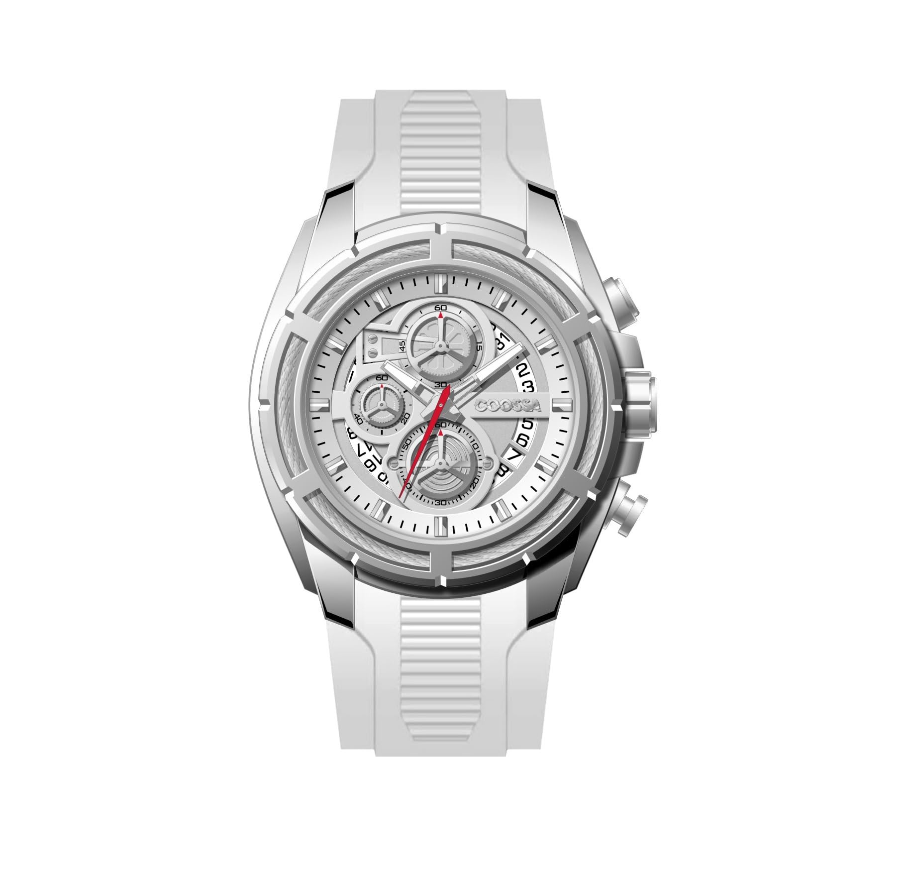 COOSSA ORIGINAL Men's Watch Chronograph 20243 48MM Silver Tone Case White Silicone Band 30M Water Resistant Cable Bezel